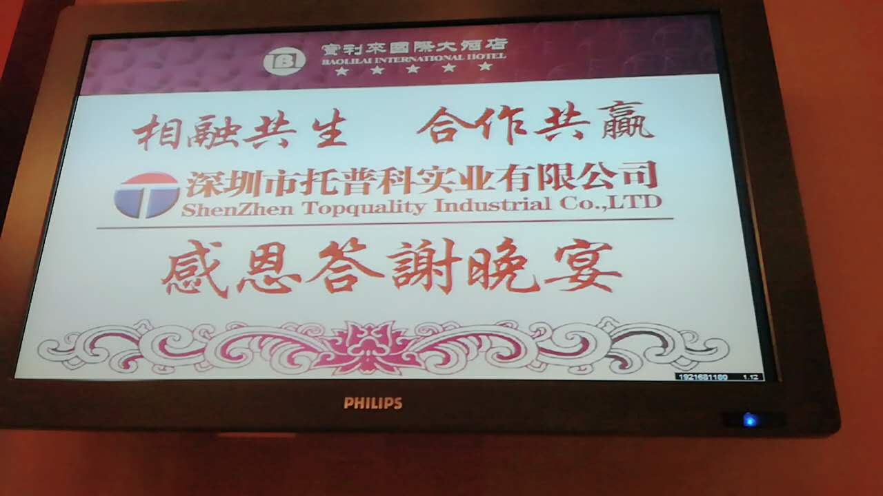 2017年6月2日,深圳市托普科實(shí)業(yè)有限公司感恩答謝晚宴在深圳福永寶利來(lái)國(guó)際大酒店拉開(kāi)帷幕,“相融共生,合作共贏”是我們托普科這次感恩答謝晚宴的主題。答謝會(huì)除了表達(dá)對(duì)在場(chǎng)所有人員的感謝,更是打開(kāi)大門,齊聚一堂,一起回顧了托普科十八年的歷程,感受品牌力量,分享品牌光芒,齊賞精彩節(jié)目表演,共襄盛舉。
