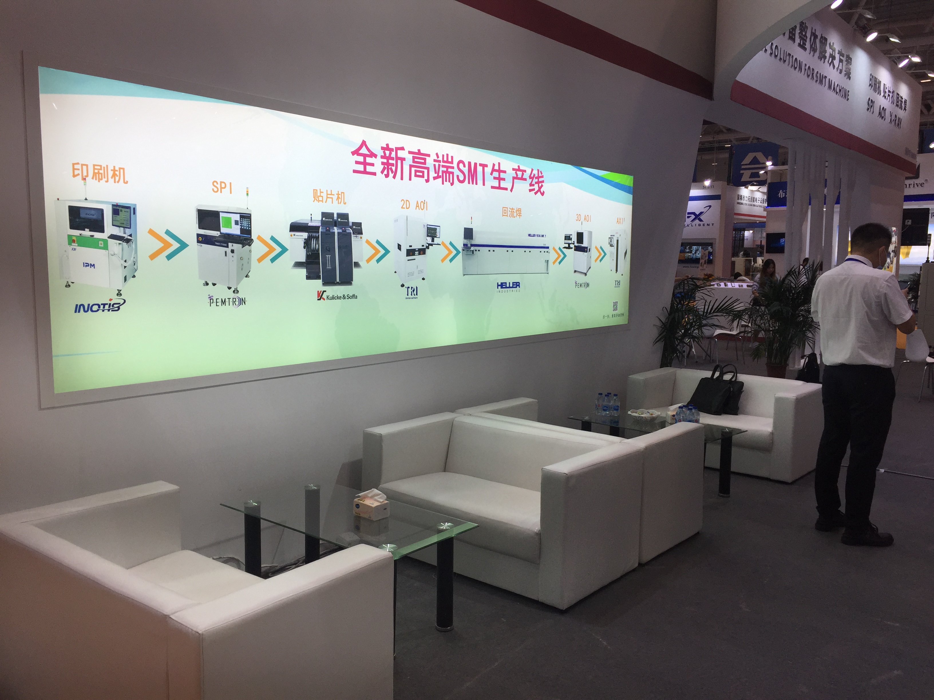 展會現(xiàn)場人氣爆棚,觀眾參觀熱氣度高漲,我司本次展出了高端SMT一站式解決方案設(shè)備:Inotis X6L印刷機、KY8030 2代SPI、ASM(西門子)X4IS和D4貼片機、VI 5K在線AOI、以及EMS智慧工廠沙盤,憑借我司多年品牌知名度和現(xiàn)場工程技術(shù)銷售的講解,現(xiàn)場聚集了大量粉絲觀眾,人流涌動熱鬧非凡,托普科實業(yè)用實力贏得了客戶認(rèn)可和贊譽。