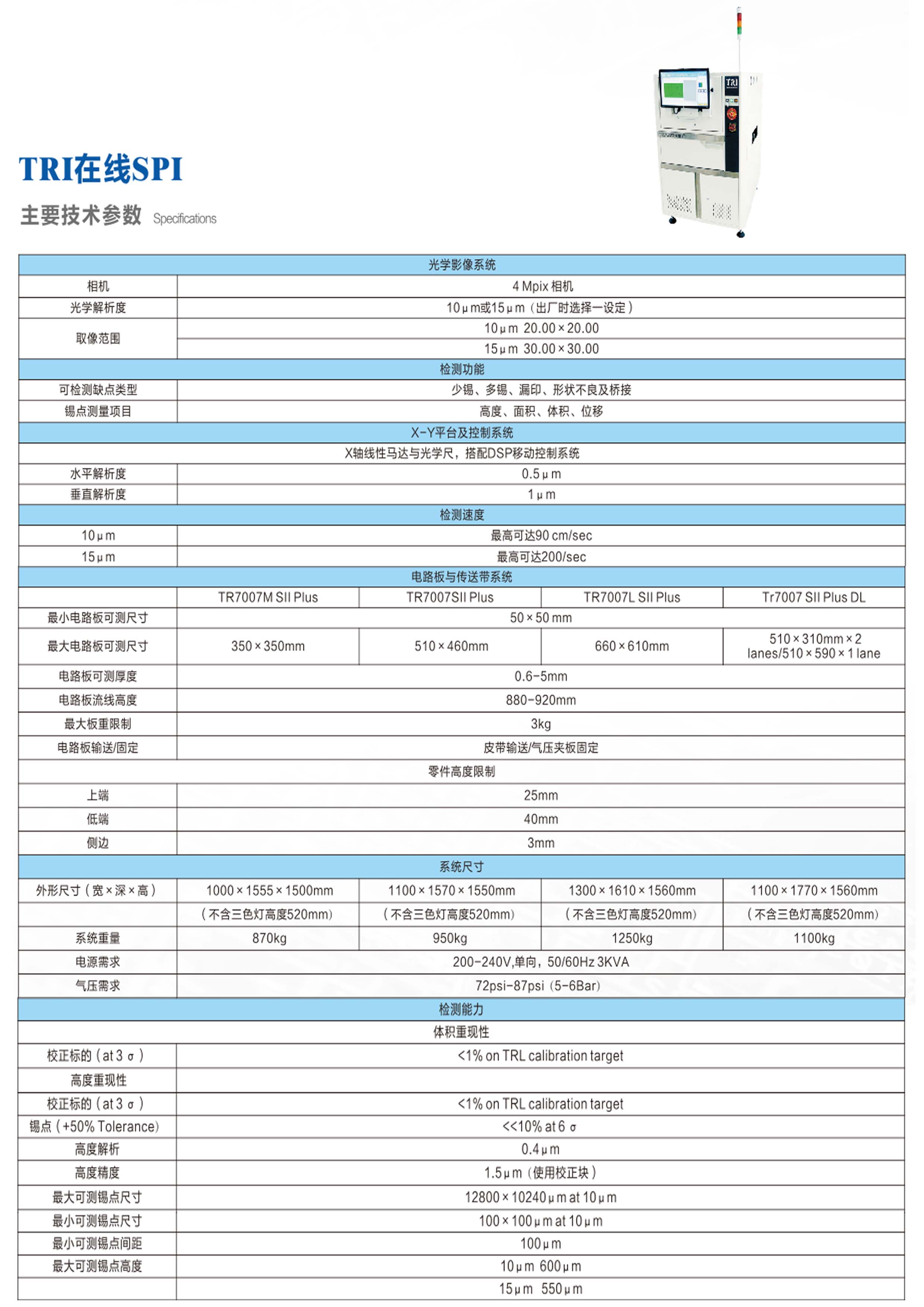 德律3D TR7007 SII Plus,德律TR7007M SII Plus,德律SPITR7007L SII Plus:
