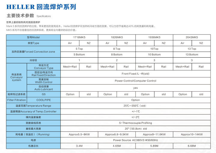 HELLER回流焊1936MK5回流焊爐系列帶來更低的使用成本,HELLER回流焊爐再加熱和冷卻方面的發(fā)展,可以為您節(jié)省高達40%的耗氮量和耗電量。MK5系列不僅是最佳的回流焊系統(tǒng),更具有業(yè)內最好的綜合價值。