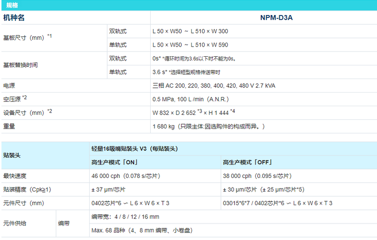 NPM-D3A規(guī)格參數(shù):